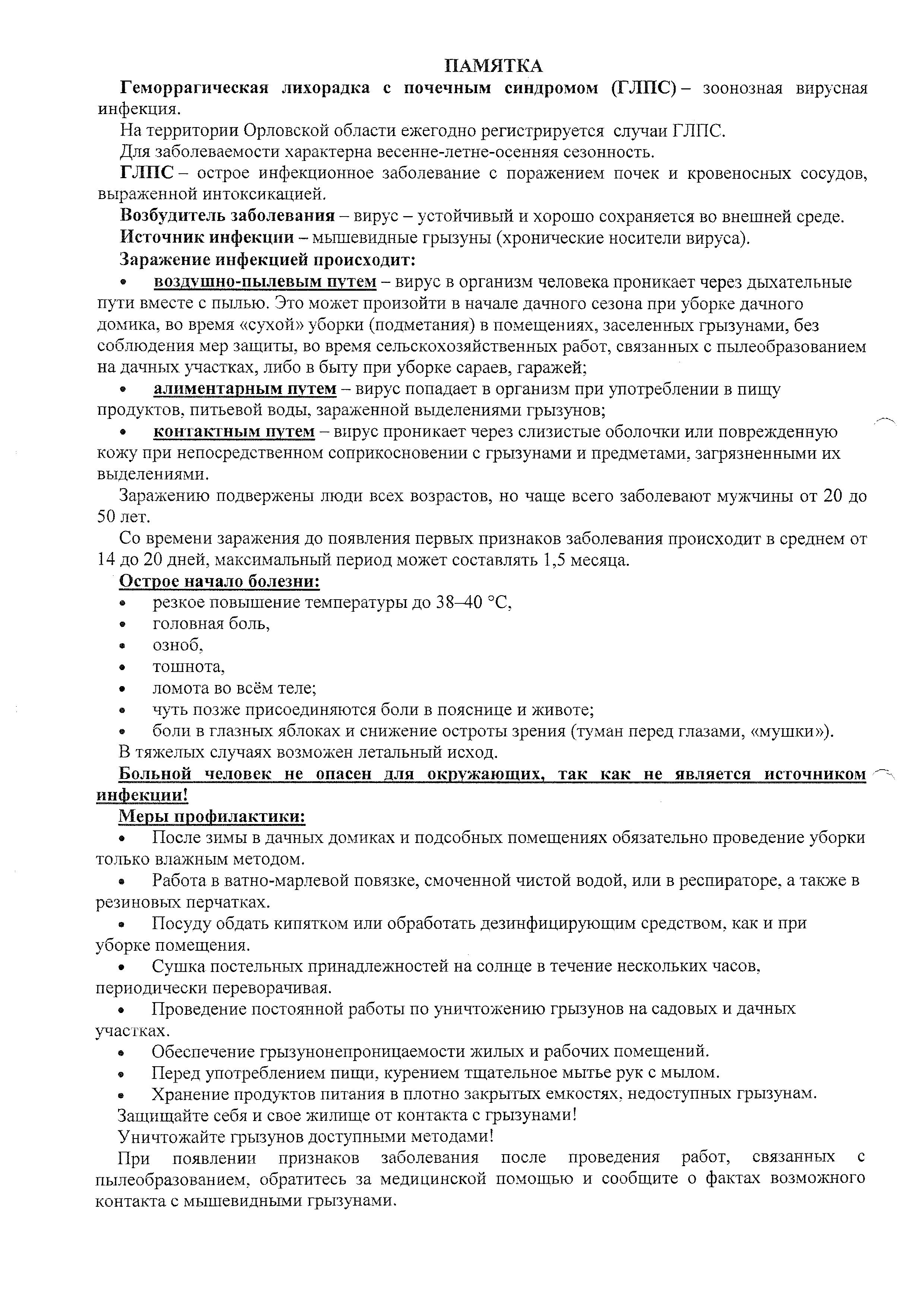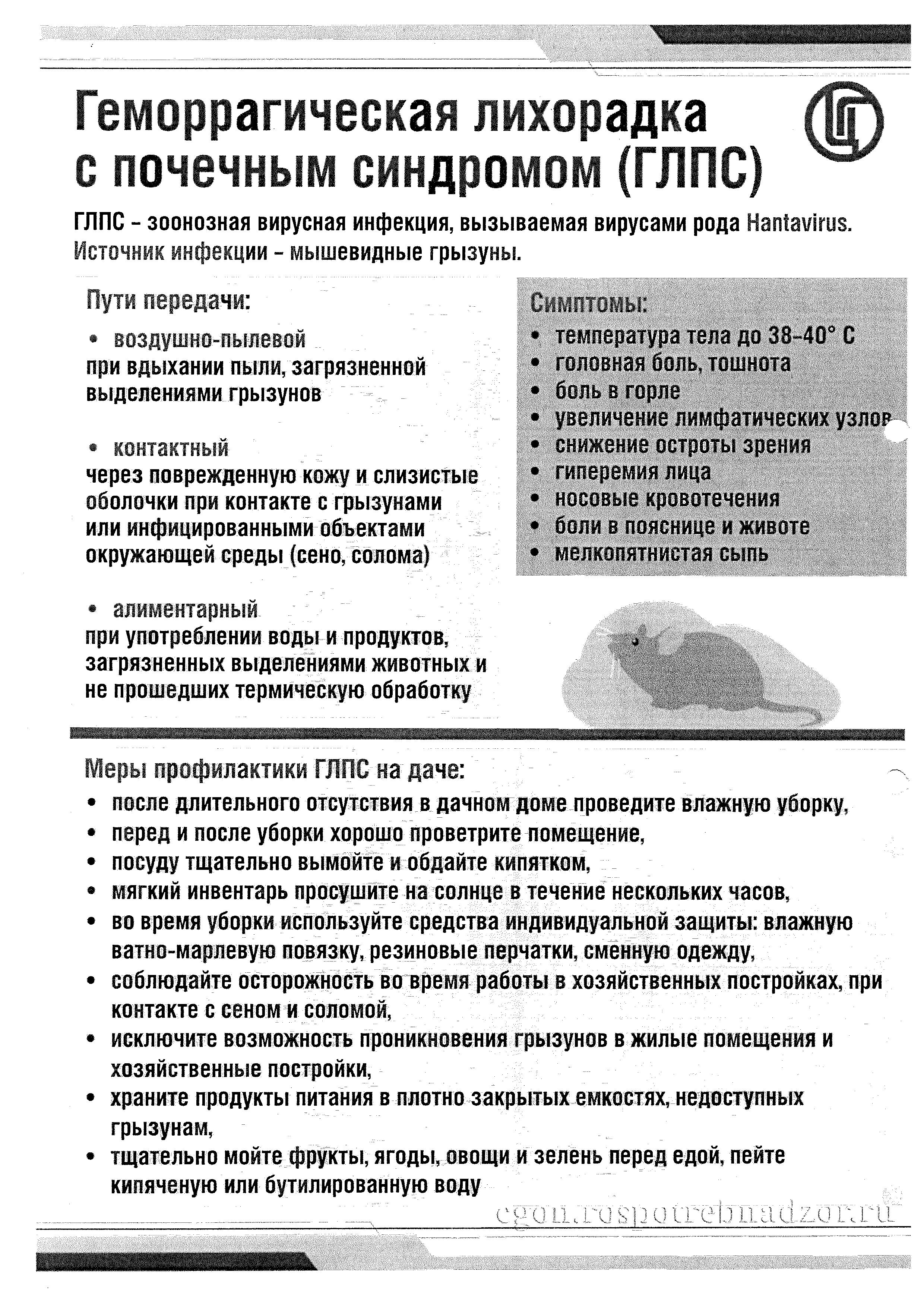 26.03.2026Геморрагическая лихорадка с почечным синдромом (ГЛПС) – зоонозная вирусная инфекция, вызываемая вирусами рода Hantavirus. Заболевание сопровождается поражением мелких сосудов всего организма человека. Подробная информация в памятках ниже.